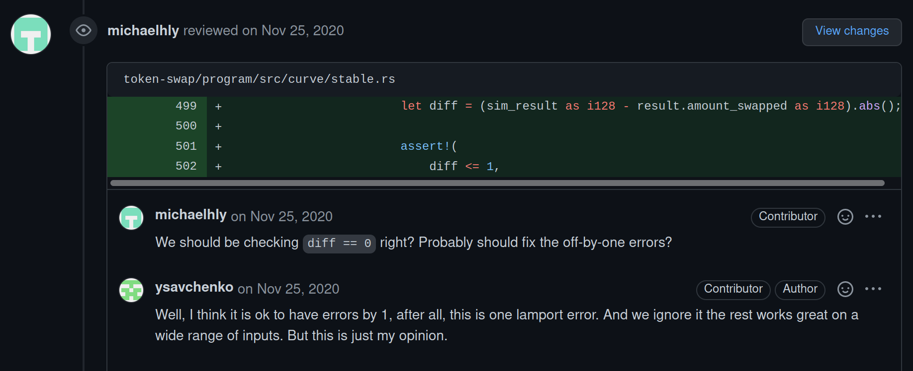 It was also weird how we could only ever get at most one extra token. As usual, the best way to answer such questions is to read the code. We dived into the stable swap Solana implementation to look for a possible root cause.